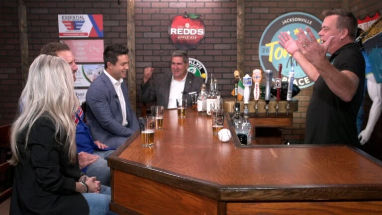 The setting is a bar at Tommy Mac’s place (Studios in Jax at 1611 San Marco Blvd) with Tom McManus, your host, as the bartender. This is significant because prior to being called to tryout for the Jacksonville Jaguars Inaugural football team in 1995, Tom was tending bar at a place called Cais in Malden, Massachusetts.